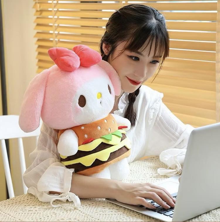 🎀 THÚ BÔNG MELODY THỎ HỒNG MẶC ĐẦM HAMBURGER – DỄ THƯƠNG KHÓ CƯỠNG 🍔💗